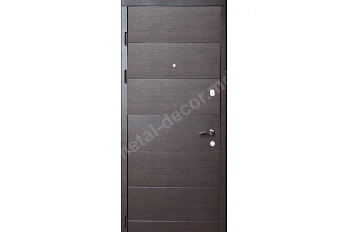 Structura ușii (cadru și canat) este realizată din oțel laminat la rece.